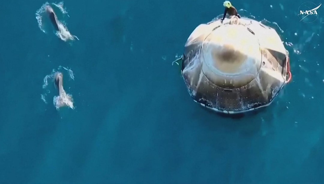 Astronotları taşıyan kapsül, saatler süren yolculuğun ardından Meksika Körfezi’ne paraşütle indi.
