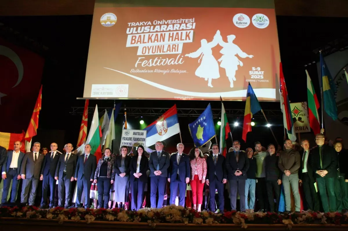 EDİRNE’de bu yıl ilk kez düzenlenen Uluslararası Balkan Halk Oyunları Festivali’nin açılış töreninde, 6 Şubat depremlerinin yıl dönümü dolayısıyla müzik…