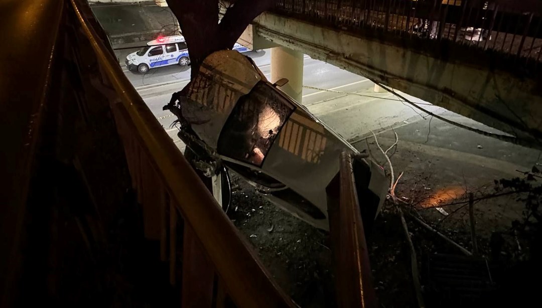 Kontrolden çıkan otomobil viyadükten düştü‘); }